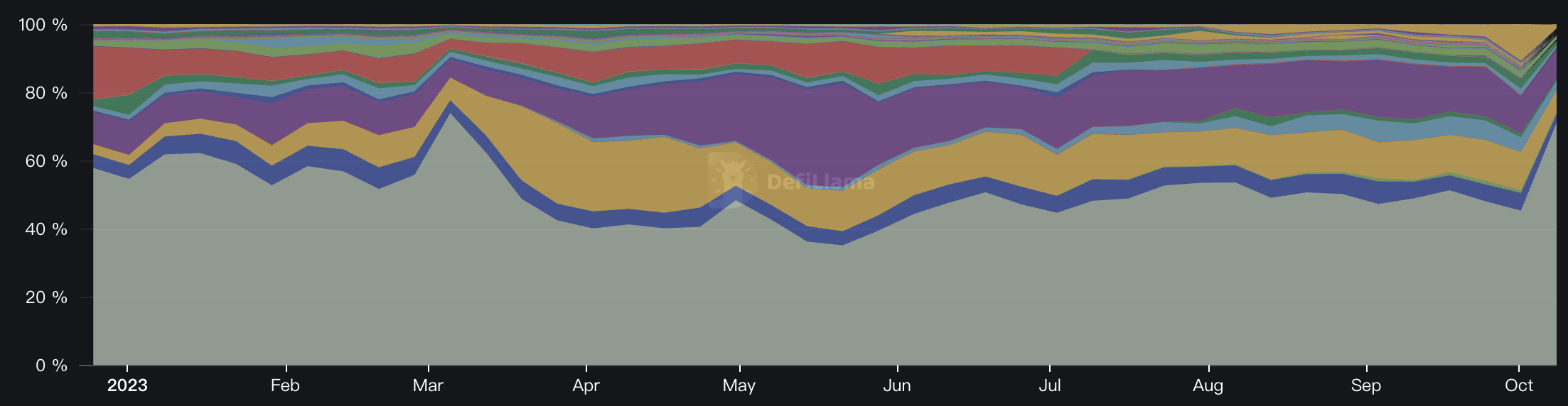 (Phần màu tím là BNB Smart Chain, đứng thứ 2 về thị phần)