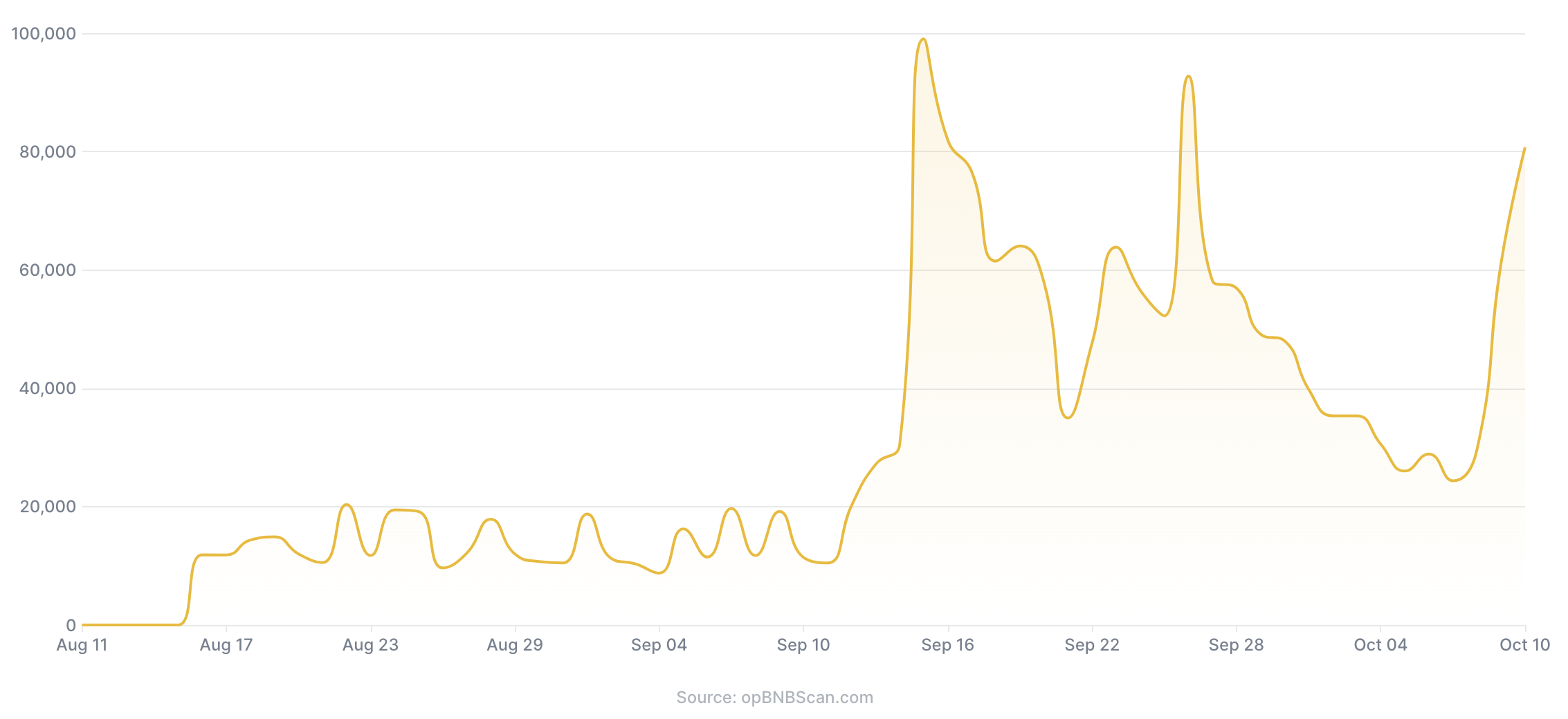 (Số lượng địa chỉ hoạt động hàng ngày của opBNB không ngừng tăng lên)