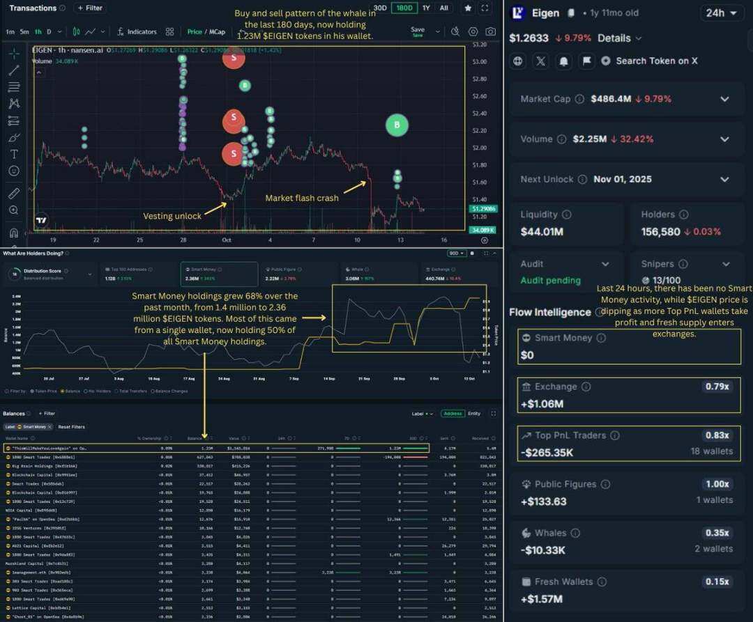 Vào ngày 10 tháng 10, toàn bộ thị trường tiền điện tử đã lao dốc không phanh sau tin tức về thuế quan, với $EIGEN giảm mạnh 53% trong ngày hôm đó, từ 1,82 đô la xuống còn 0,86 đô la. Thoạt nhìn, đây có vẻ là một nạn nhân khác của một đợt sụp đổ chớp nhoáng, nhưng sự thật còn hơn thế nữa.