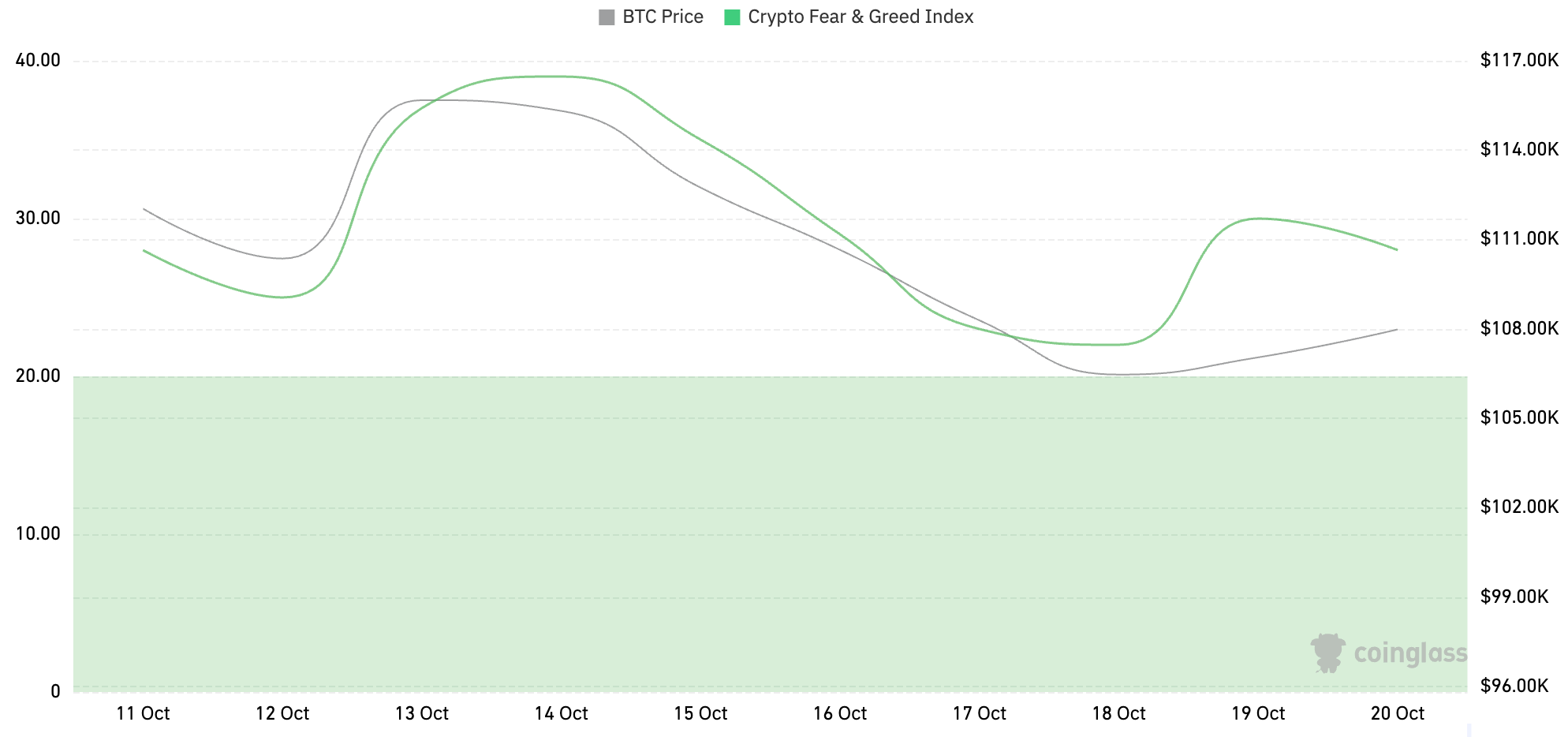 Chỉ số hoảng loạn tiền điện tử ở mức 28, cho thấy sự hoảng loạn.