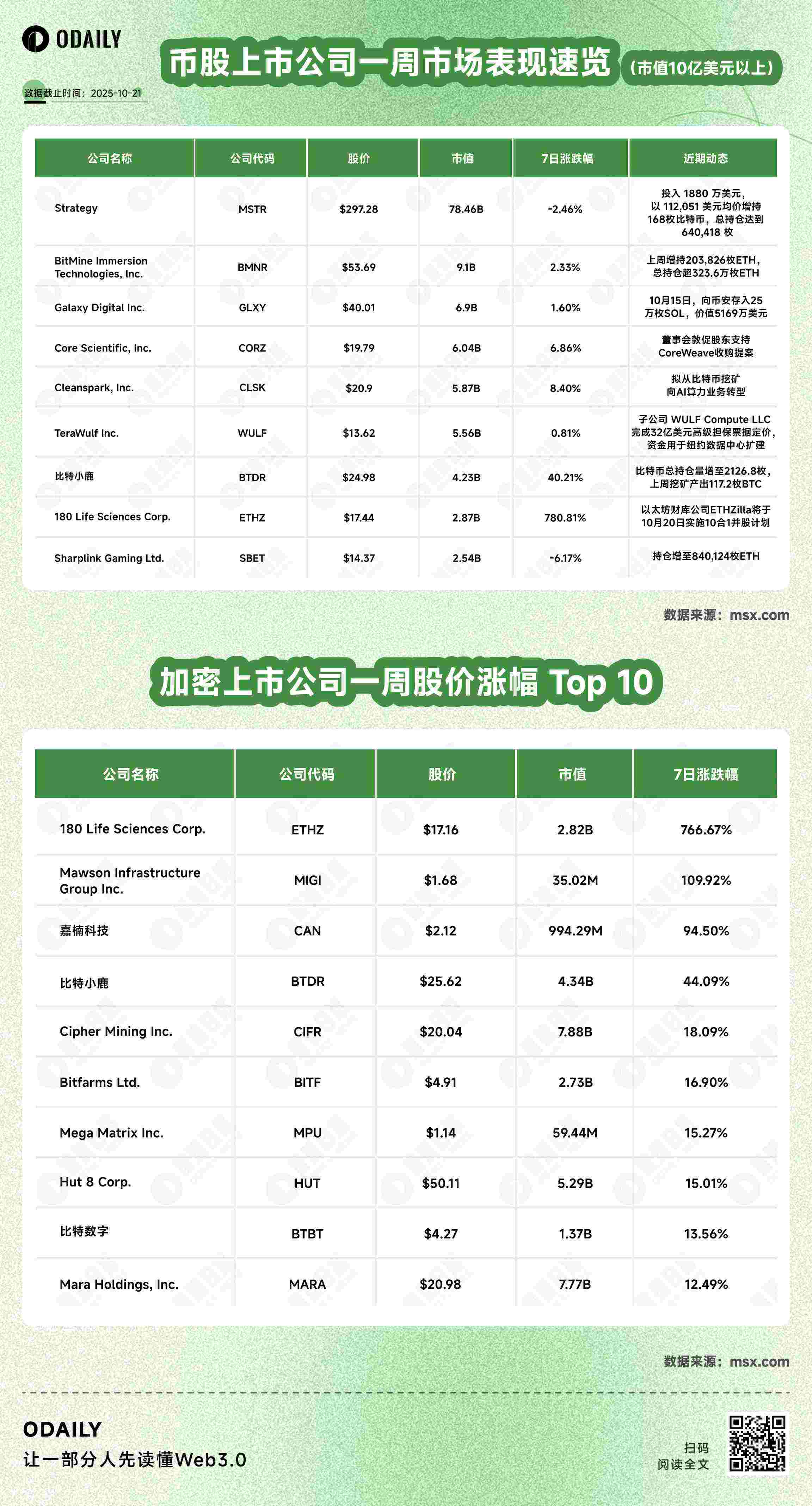 Ghi chú của Biên tập viên: Sau một tuần giá phục hồi, nhiều công ty niêm yết áp dụng chiến lược DAT đang tiếp tục tăng lượng nắm giữ các loại token khác nhau. Tuy nhiên, có lẽ do ảnh hưởng của tình hình chính trị trong nước đang thay đổi, các công ty niêm yết tại Nhật Bản, chẳng hạn như Metaplanet, đã tạm thời ngừng tích trữ coin. Hơn nữa, nhiều công ty niêm yết đang lựa chọn chuyển đổi mô hình kinh doanh để theo đuổi các đường cong tăng trưởng thứ cấp. Sau đây là tóm tắt của Odaily về thông tin thị trường chứng khoán và tiền điện tử tuần trước. Tất cả dữ liệu chứng khoán Mỹ được lấy từ msx.com .