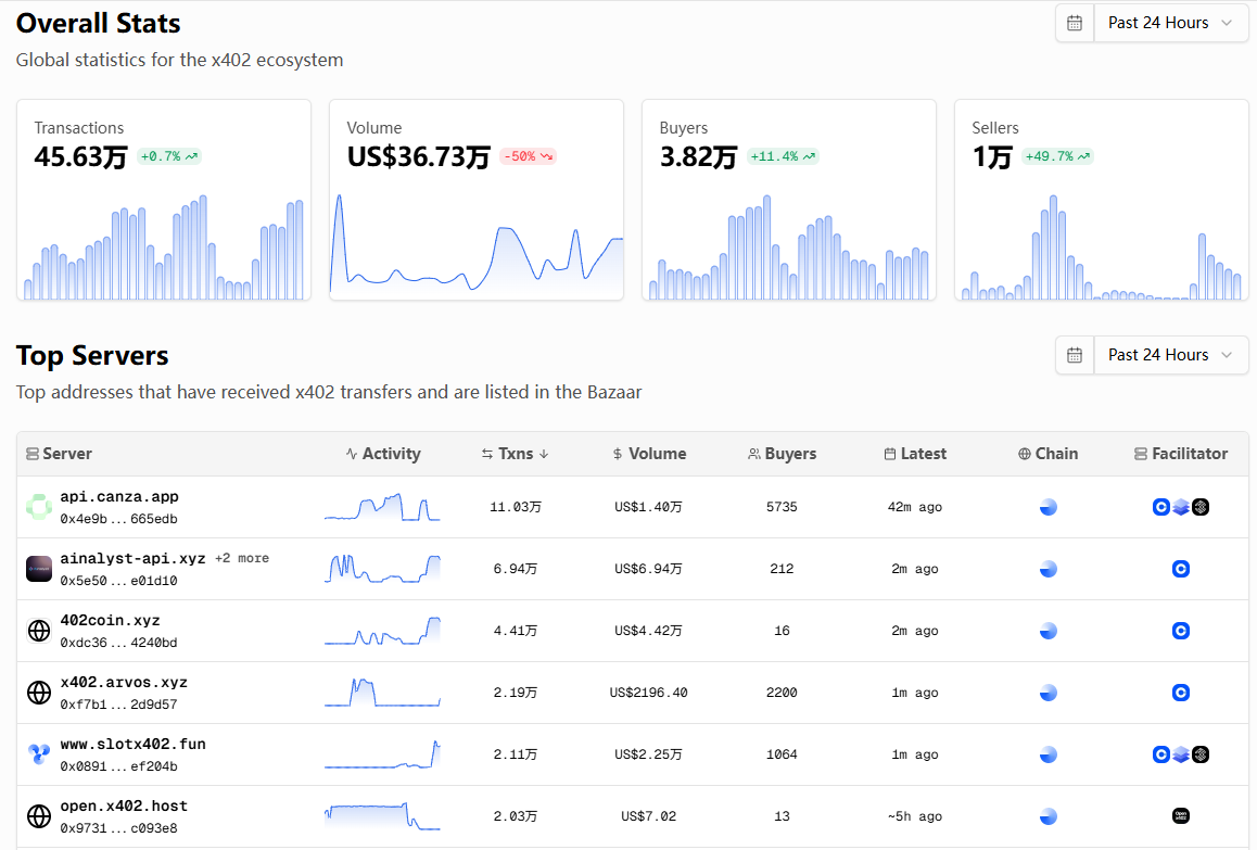 Ở cấp độ cơ sở hạ tầng, giao thức x402 đã chọn điểm khởi đầu đơn giản nhất: khả năng tương thích sâu với HTTP thông qua mã trạng thái 402, cho phép các nhà phát triển kích hoạt chức năng thanh toán cho các trang web hoặc API chỉ với "một dòng mã". Logic tích hợp tối giản này không chỉ giảm bớt rào cản gia nhập cho các nhà phát triển vừa và nhỏ mà còn ngăn chặn các nền tảng lớn phải chịu chi phí di chuyển khổng lồ trong giai đoạn khám phá. Phần mềm trung gian, thư viện máy khách và bộ điều hợp đa chuỗi do Coinbase và Cloudflare cung cấp giúp giảm thêm chi phí phát triển và bảo trì. Đặc biệt, sự tồn tại của bộ điều hợp đa chuỗi cho phép các nhà cung cấp dịch vụ lựa chọn môi trường thực thi blockchain tối ưu dựa trên các kịch bản cụ thể của họ. Ví dụ: họ có thể sử dụng Polygon cho các yêu cầu chi phí thấp, đồng thời cao, mạng chính Ethereum cho các kịch bản bảo mật cao hoặc đạt được sự tích hợp sâu với hệ thống giao dịch trên chuỗi cơ sở của Coinbase. Tính linh hoạt này giúp tăng cường đáng kể tính phổ biến của giao thức, do đó làm tăng khả năng trở thành một tiêu chuẩn thực tế. Ở cấp độ nền tảng, Chợ x402 của Coinbase là kịch bản ứng dụng đầu tiên với hệ sinh thái mới ra đời. Nền tảng thị trường này dành cho các tác nhân AI và nhà phát triển cho phép các nhà cung cấp dịch vụ liệt kê API, nguồn dữ liệu hoặc mô-đun chức năng của họ, mà người dùng hoặc tác nhân AI sau đó có thể sử dụng khi cần và thực hiện thanh toán tức thì thông qua giao thức x402. Giá trị của nó nằm ở việc giải quyết những thách thức lâu dài về thanh toán và tích hợp trong nền kinh tế API. Trước đây, việc kiếm tiền từ API thường yêu cầu các quy trình đăng ký, đăng ký thành viên và thanh toán hàng tháng phức tạp. Tuy nhiên, trong môi trường x402 Bazaar, việc thanh toán diễn ra tức thời và việc thanh toán được thực hiện ngay lập tức; tính năng thanh toán vi mô giúp hiện thực hóa mô hình trả tiền theo mức sử dụng. Đối với các tác nhân AI, điều này có nghĩa là họ có thể tự chủ và linh hoạt truy cập vào nhiều dịch vụ khác nhau trên thị trường mà không cần dựa vào ủy quyền thủ công của con người hoặc ràng buộc thẻ tín dụng. Cơ chế thị trường này hoàn toàn phù hợp với tính tự chủ của các tác nhân AI, tạo ra một điểm tăng trưởng đầy hứa hẹn cho Coinbase và Cloudflare. Nếu x402 Bazaar có thể tích lũy đủ cung và cầu, nó rất có thể sẽ phát triển thành "App Store của nền kinh tế tác nhân AI".