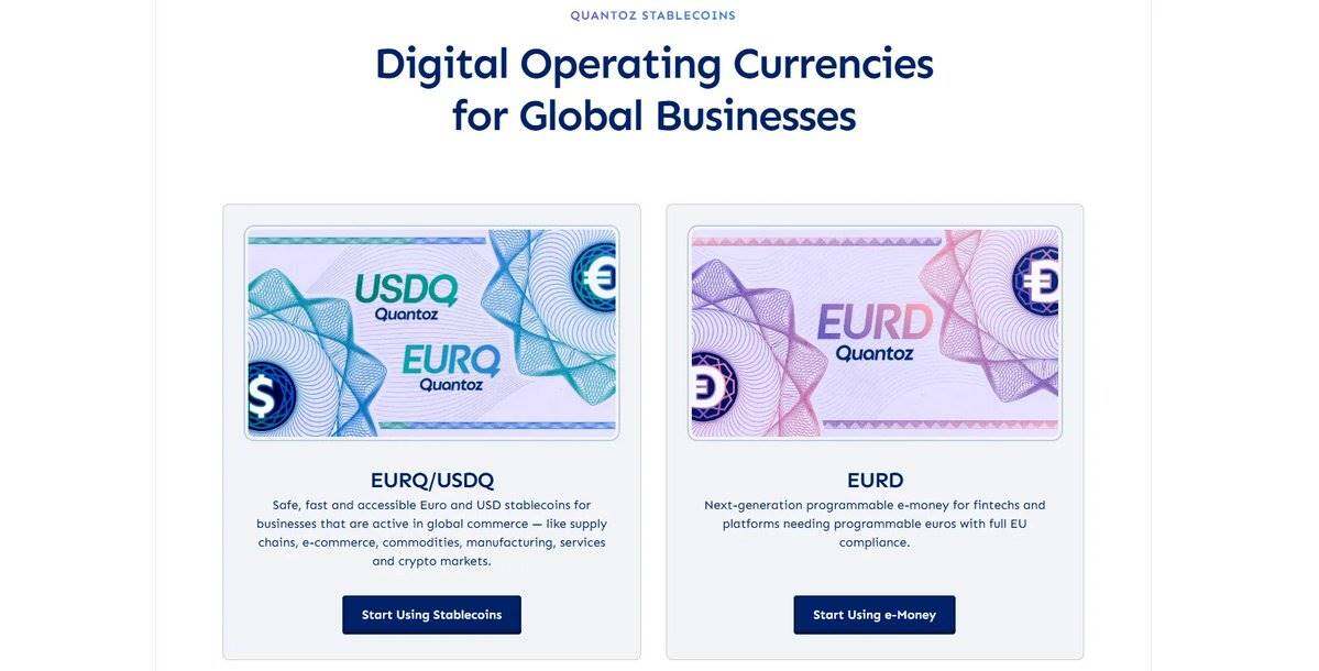 Quantoz là đơn vị phát hành stablecoin tuân thủ MiCA, cung cấp EURQ và EURD được neo theo đồng euro và USDQ được neo theo đồng đô la Mỹ.