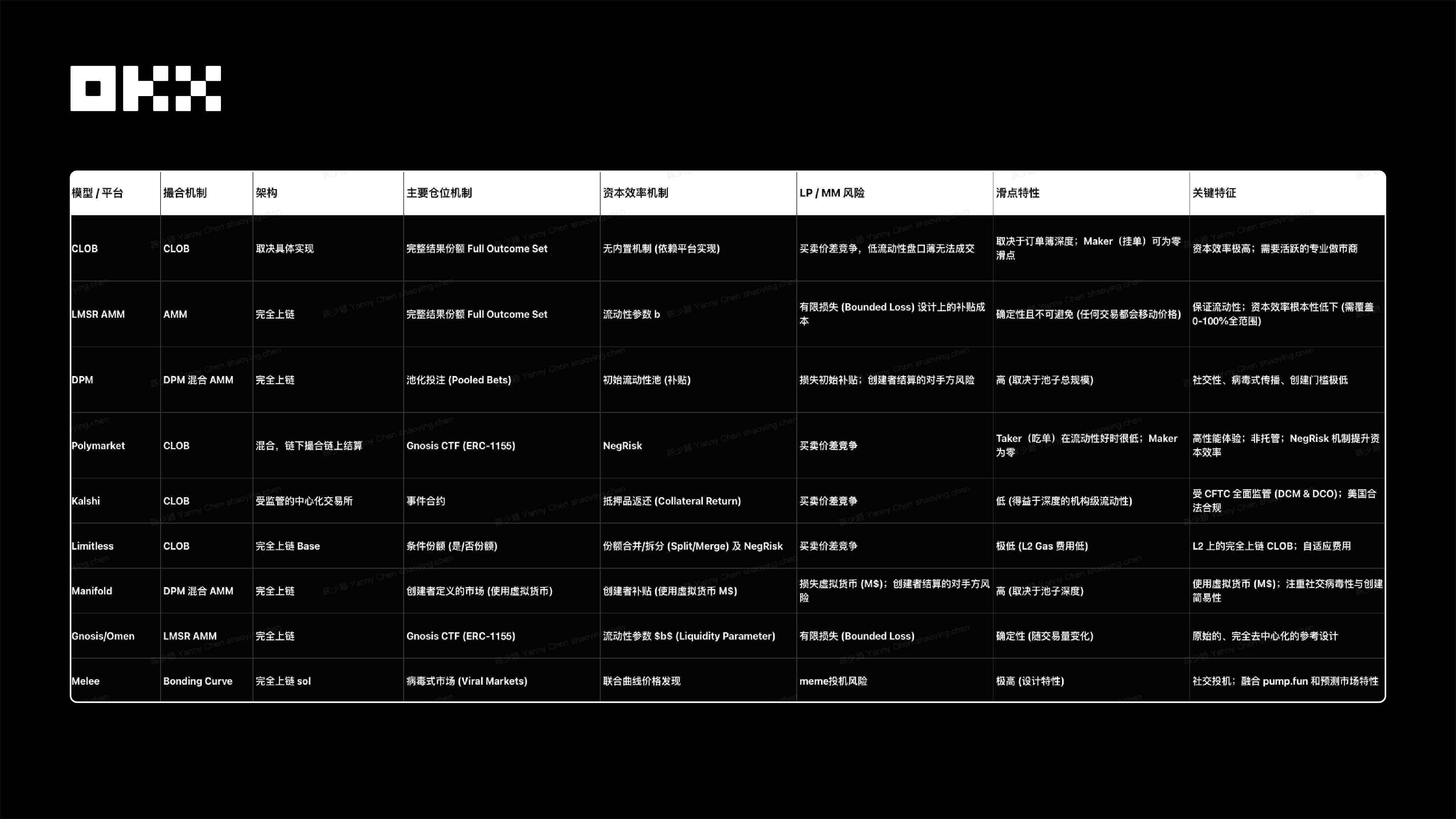 Từ các mô hình lý thuyết (CLOB, LMSR) đến các triển khai nền tảng cụ thể (Polymarket, Kalshi, v.v.), bài báo này so sánh một cách có hệ thống sự khác biệt của chúng về cơ chế khớp lệnh, kiến trúc, cơ chế định cỡ vị thế, hiệu quả vốn và đặc điểm rủi ro.
