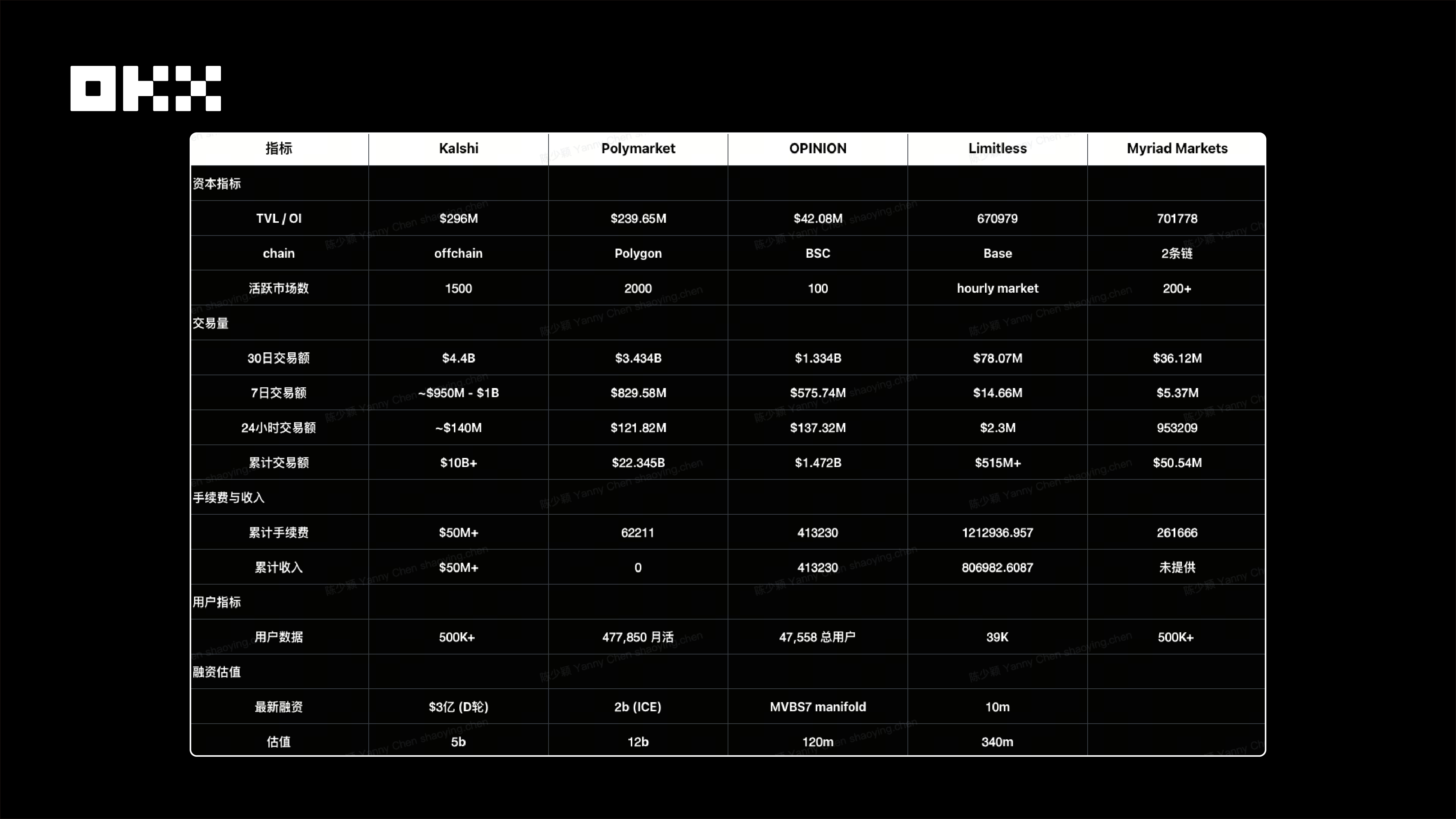 Về khối lượng giao dịch, khối lượng giao dịch tích lũy lịch sử đã vượt quá 18,1 tỷ đô la Mỹ, với mức đỉnh hàng tháng xảy ra trong cuộc bầu cử tháng 11 năm 2024, đạt 2,63 tỷ đô la Mỹ, tăng khoảng 1.000 lần so với dữ liệu trước đó vào tháng 12 năm 2020. Sau cuộc bầu cử, khối lượng giao dịch hàng tháng giảm xuống còn khoảng 1,9 tỷ đô la Mỹ, giảm khoảng 30%-40%, nhưng vẫn cao hơn nhiều so với mức của năm 2023. Về tốc độ tăng trưởng, tốc độ tăng trưởng theo năm đạt 5.270% vào tháng 7 năm 2024 và cao tới 26.000% vào tháng 10 năm 2025, chủ yếu là do hiệu ứng cơ sở thấp của cùng kỳ năm trước; trên cơ sở hàng tháng, khối lượng giao dịch từ tháng 10 đến tháng 11 năm 2024 cũng đạt mức tăng trưởng bùng nổ khoảng 750%.