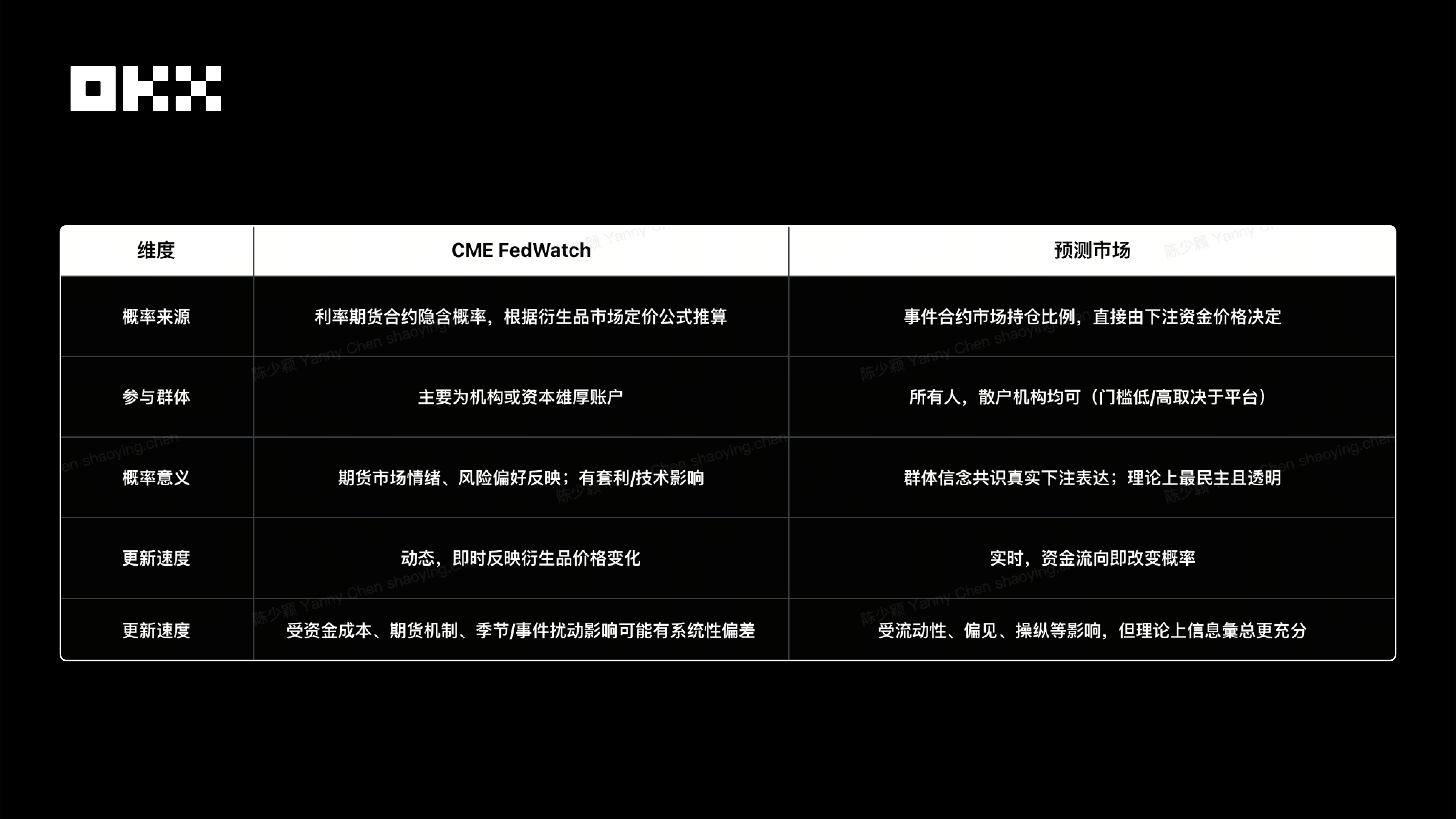 Các công cụ như CME FedWatch suy ra xác suất từ giá phái sinh, thể hiện kỳ vọng của tổ chức, nhưng bị ảnh hưởng bởi thiết kế công cụ và cấu trúc tài trợ. Ngược lại, các thị trường dự đoán mở như Polymarket và Kalshi trực tiếp xác định xác suất thông qua các khoản cược của tất cả người tham gia, về mặt lý thuyết mang lại tính minh bạch và dân chủ cao hơn. Hoạt động của nền tảng cao hơn phản ánh thông tin toàn diện hơn.