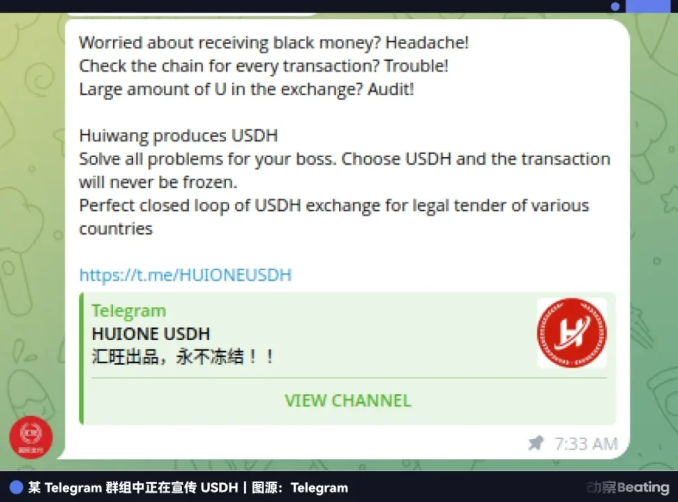 - 汇旺为黑灰产提供支付、担保及稳定币USDH服务。