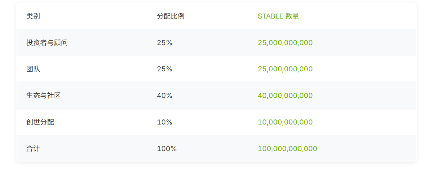 STABLE là token quản trị của mạng chính Stable và hệ sinh thái của nó, được thiết kế để thiết lập tính nhất quán về động lực kinh tế lâu dài giữa các nhà xác thực, nhà phát triển và người dùng.