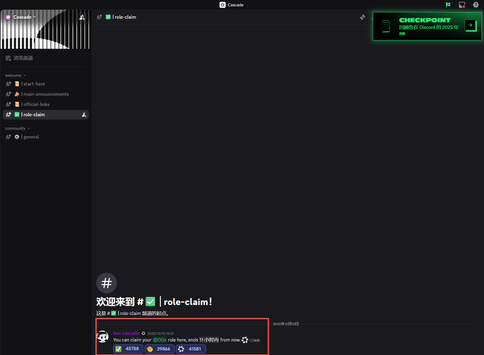 BƯỚC 2. Tham gia cộng đồng Discord chính thức (liên kết: https://discord.com/invite/cascade-xyz ) và nhận trạng thái OG của bạn (nhiệm vụ có thời hạn).