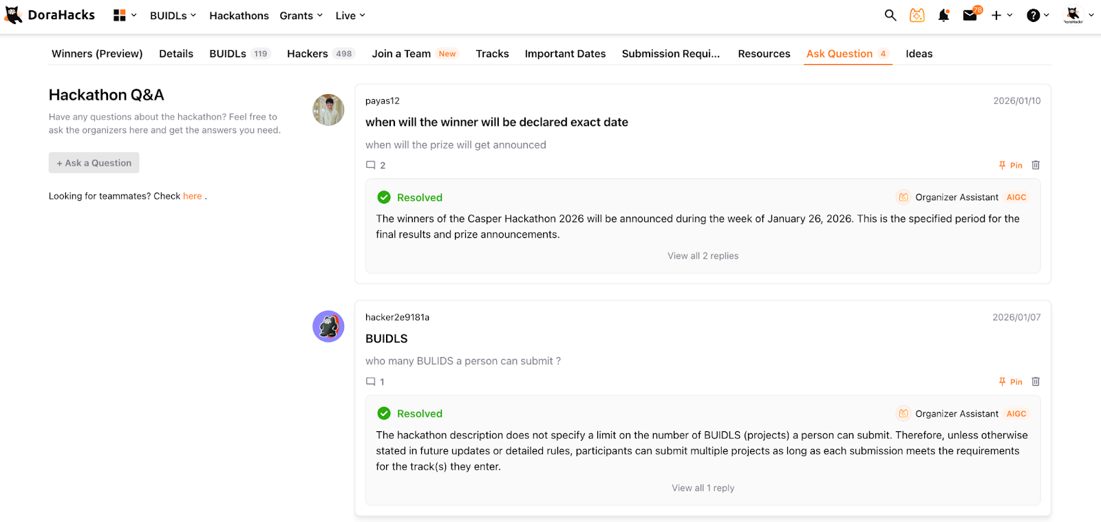 Hỏi đáp tự động bằng AI trên DoraHacks