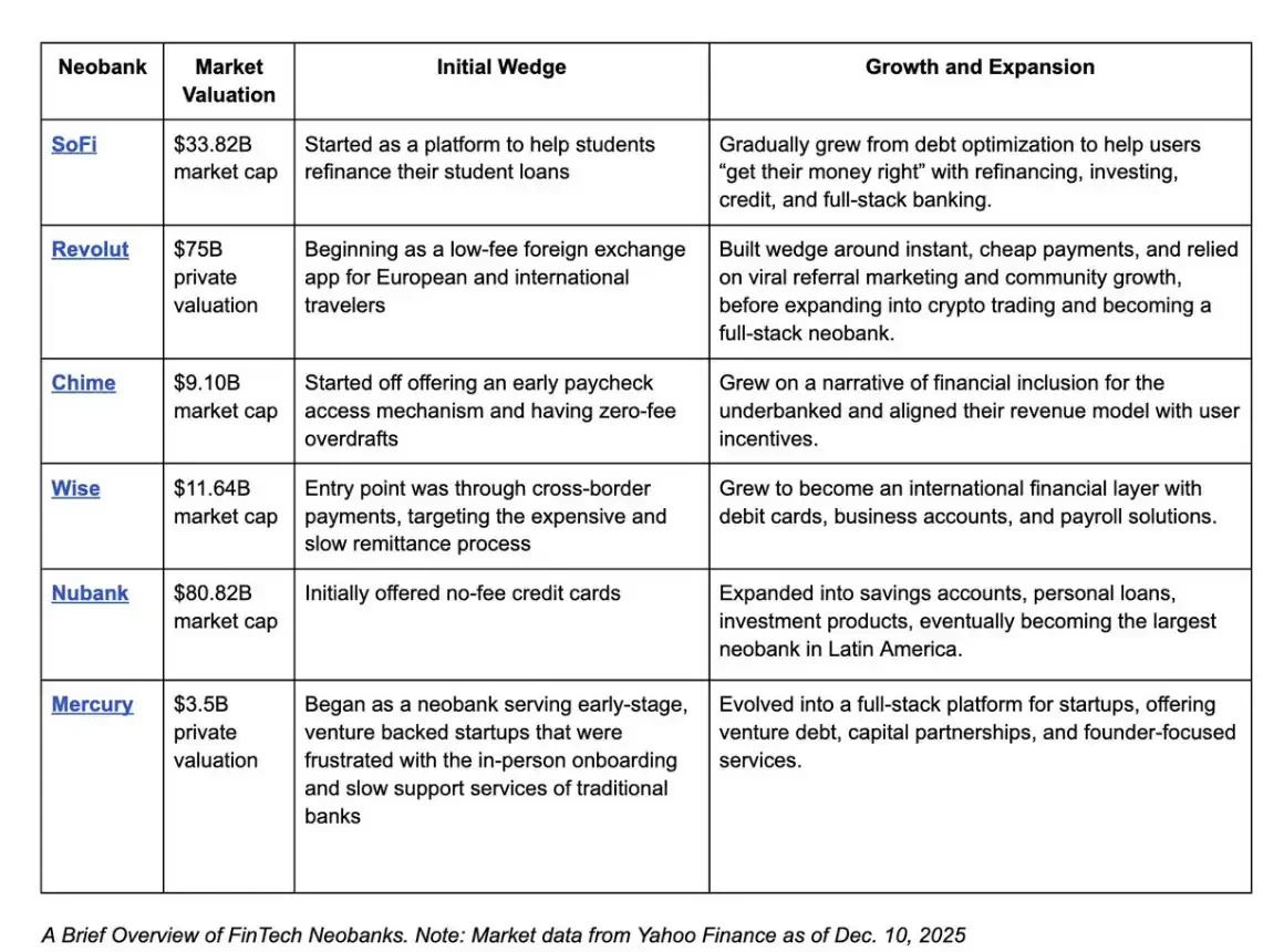 Ưu điểm cốt lõi của việc xây dựng ngân hàng mới bằng cách lấy ứng dụng ví làm điểm xâm nhập (beachhead) là: Giao diện trước của ví - như MetaMask và Phantom - thường nắm giữ lớp cửa ngõ tương tác giữa người dùng và tài sản mã hóa. Lý thuyết "ví béo (fat wallet thesis)" cho rằng, lớp ví chiếm đoạt phần lớn khả năng phân phối và luồng đơn hàng hướng đến người tiêu dùng, và đối với người dùng cuối, chi phí thay đổi ví cực kỳ cao.