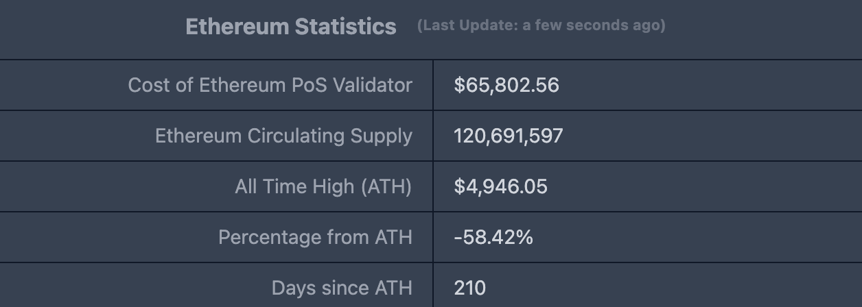 ETHUSD: Giá hiện tại $2.056,33, giá cao nhất lịch sử $4.946,05, mức giảm so với giá cao nhất khoảng 58,42%