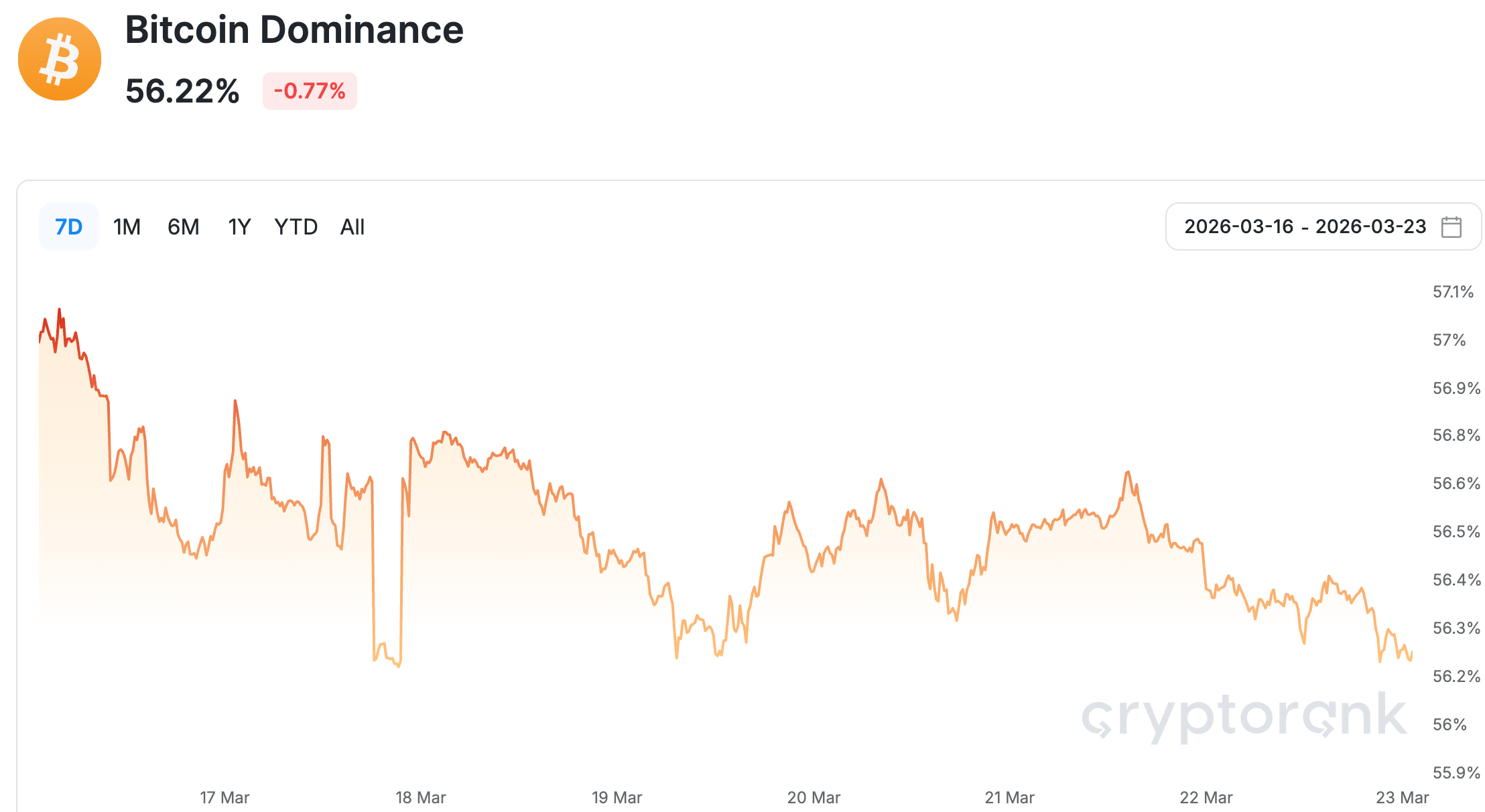 Nguồn dữ liệu: Bitcoin dominance from cryptorank, https://cryptorank.io/charts/btc-dominance
