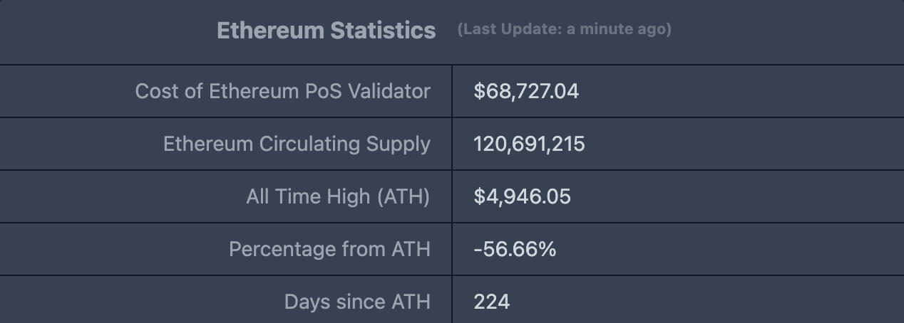 ETHUSD: Giá hiện tại $2,146.74, giá cao nhất lịch sử $4,946.05, mức giảm so với đỉnh khoảng 56,66%