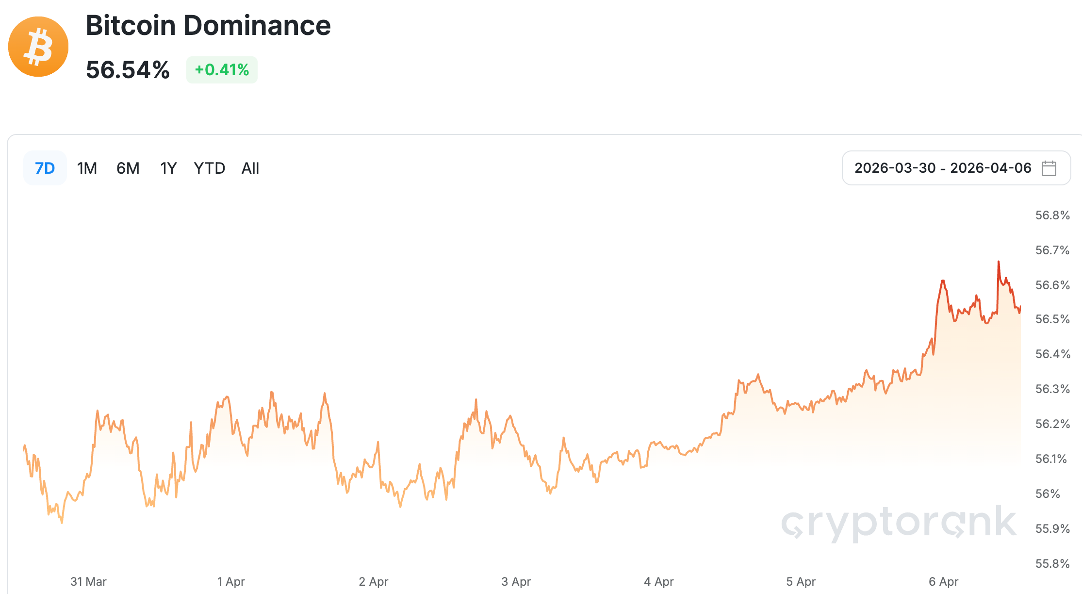 Nguồn dữ liệu: Bitcoin dominance from cryptorank, https://cryptorank.io/charts/btc-dominance