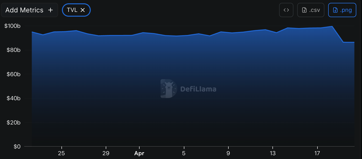 Theo dữ liệu từ DeFiLlama, tổng TVL DeFi tuần này là 86,275 tỷ USD, giảm khoảng 9,06% so với 94,871 tỷ USD của tuần trước.