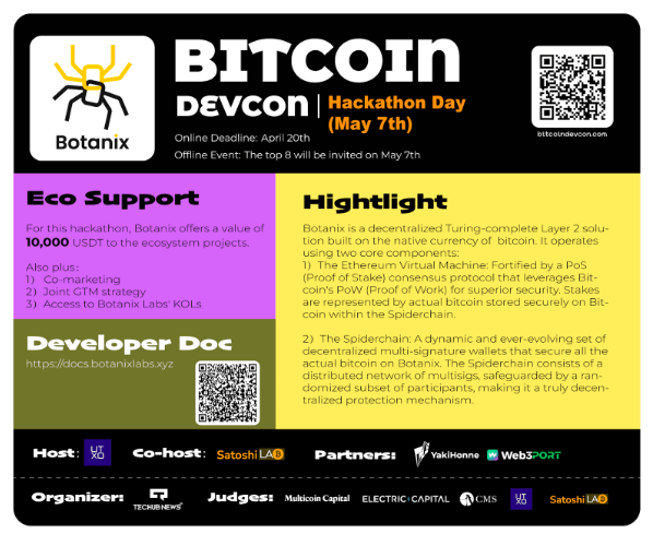 比特币减半的日子临近,牛市行情中的波动不安,全球比特币社区正在迎来一个充满机遇和挑战的新时代。作为比特币生态系统的核心推动力量,开发者们肩负着推动技术创新和优化生态系统的重任。为此,由UTXO Management主办、Satoshi Lab联合主办、Yakihonne和Web3port合作支持,Techub News承办的盛大活动——Bitcoin Devcon,将于5月7日至8日在香港科技园举行。这次大会将汇聚全球的比特币开发者、工程师、研究者、设计师、艺术家以及投资者,旨在共同探索比特币的未来发展趋势,并为全球比特币生态系统注入新的活力。