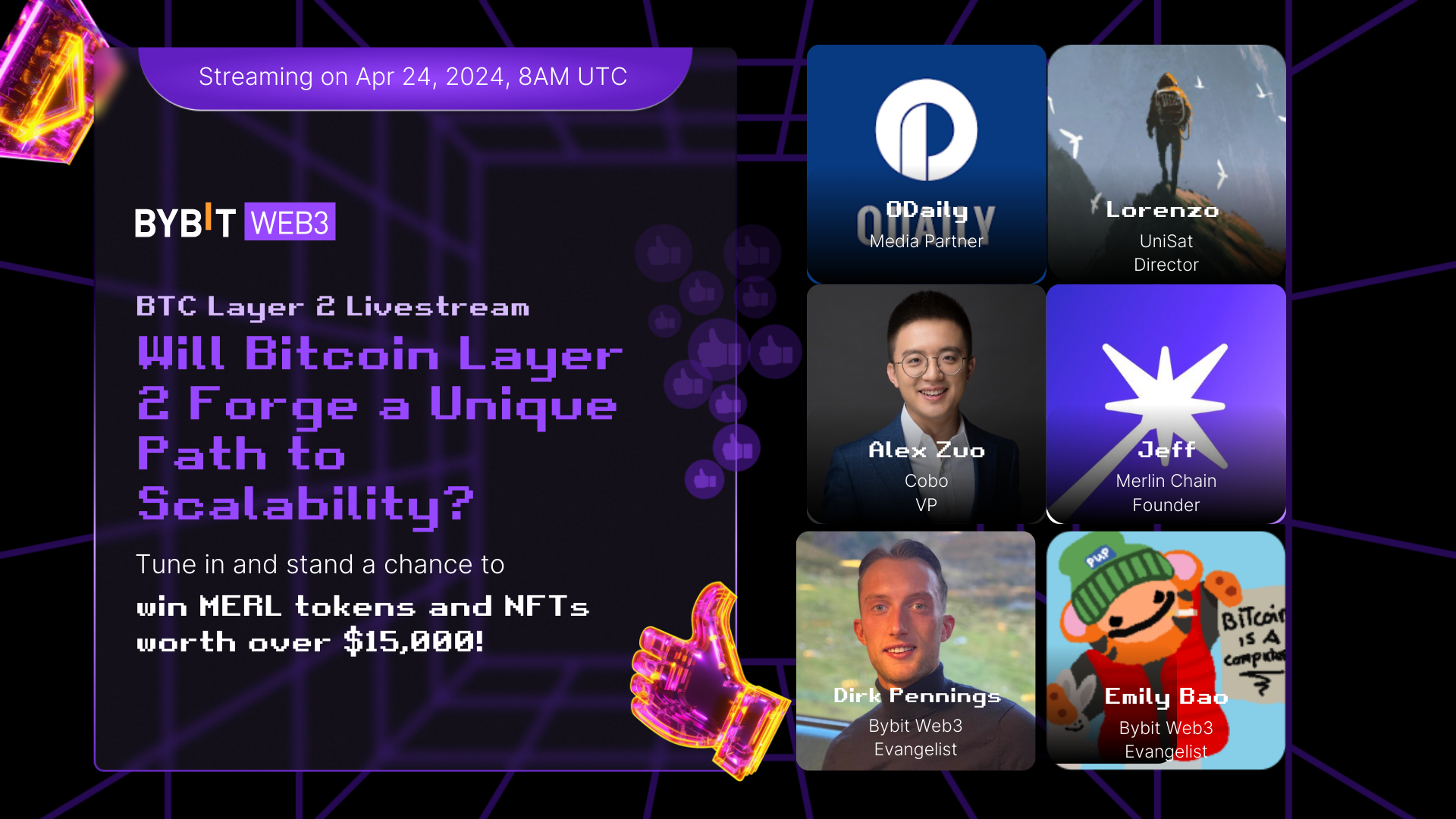 Bybit 定于 4 月 24 日下午 4:00 至下午 5:30 新加坡时间(12:00 至下午 1:30 迪拜时间)上线全新直播活动,与业内巨头一起探索比特币 L2 (Bitcoin Layer 2) 的动态世界: