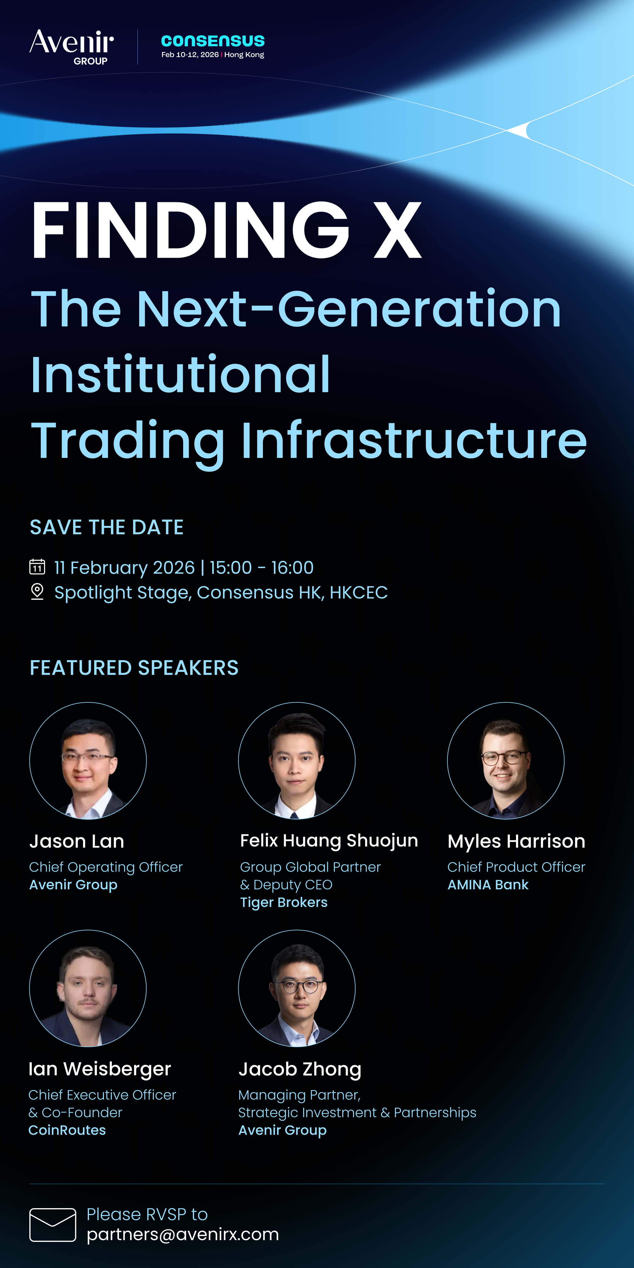 Avenir Group 将在 Consensus 大会官方舞台上举办一场行业趋势圆桌对话,并同步发布我们孵化的一个全新独立品牌及其整体品牌战略。 圆桌讨论将围绕机构投资者如何看待未来交易基础设施的标准与行业演进方向展开,并邀请多位我们深度合作的机构伙伴共同参与。