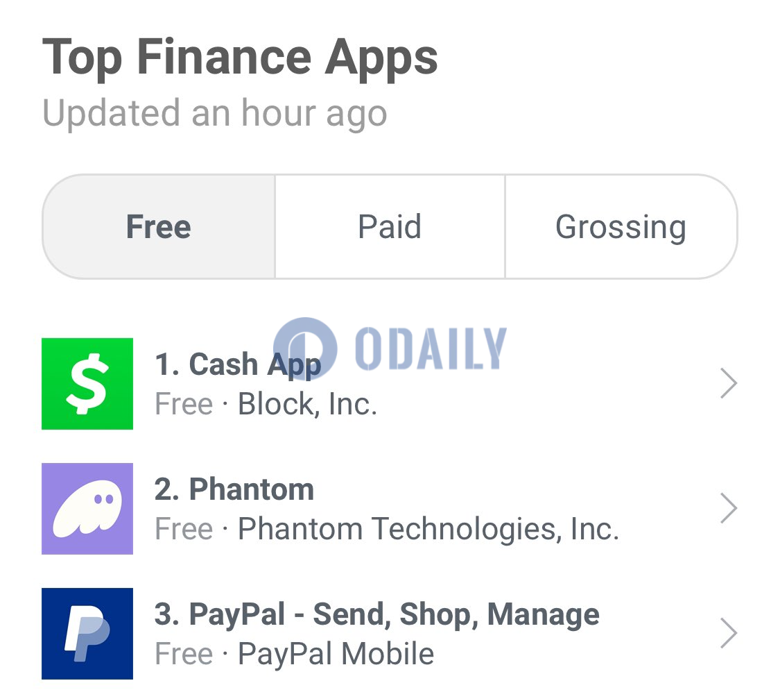 Odaily星球日报讯 根据 DEGEN NEWS 在 X 平台分享数据,Phantom 钱包在美国 Google Play 商店免费金融应用类别中下载量排名第二,超过 PayPal,仅次于 Cash App。