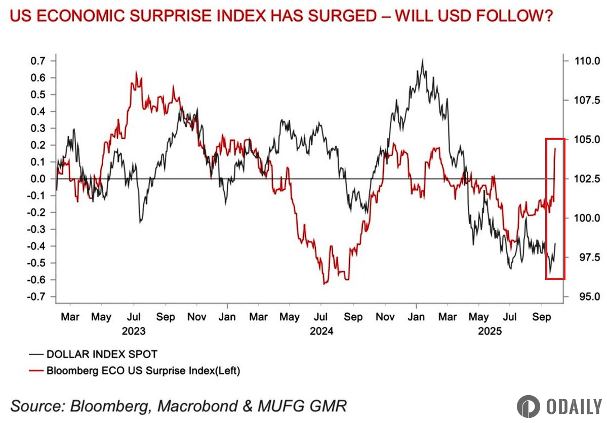 观点:美国经济意外指数本周自2月以来首次转正,美元或走强