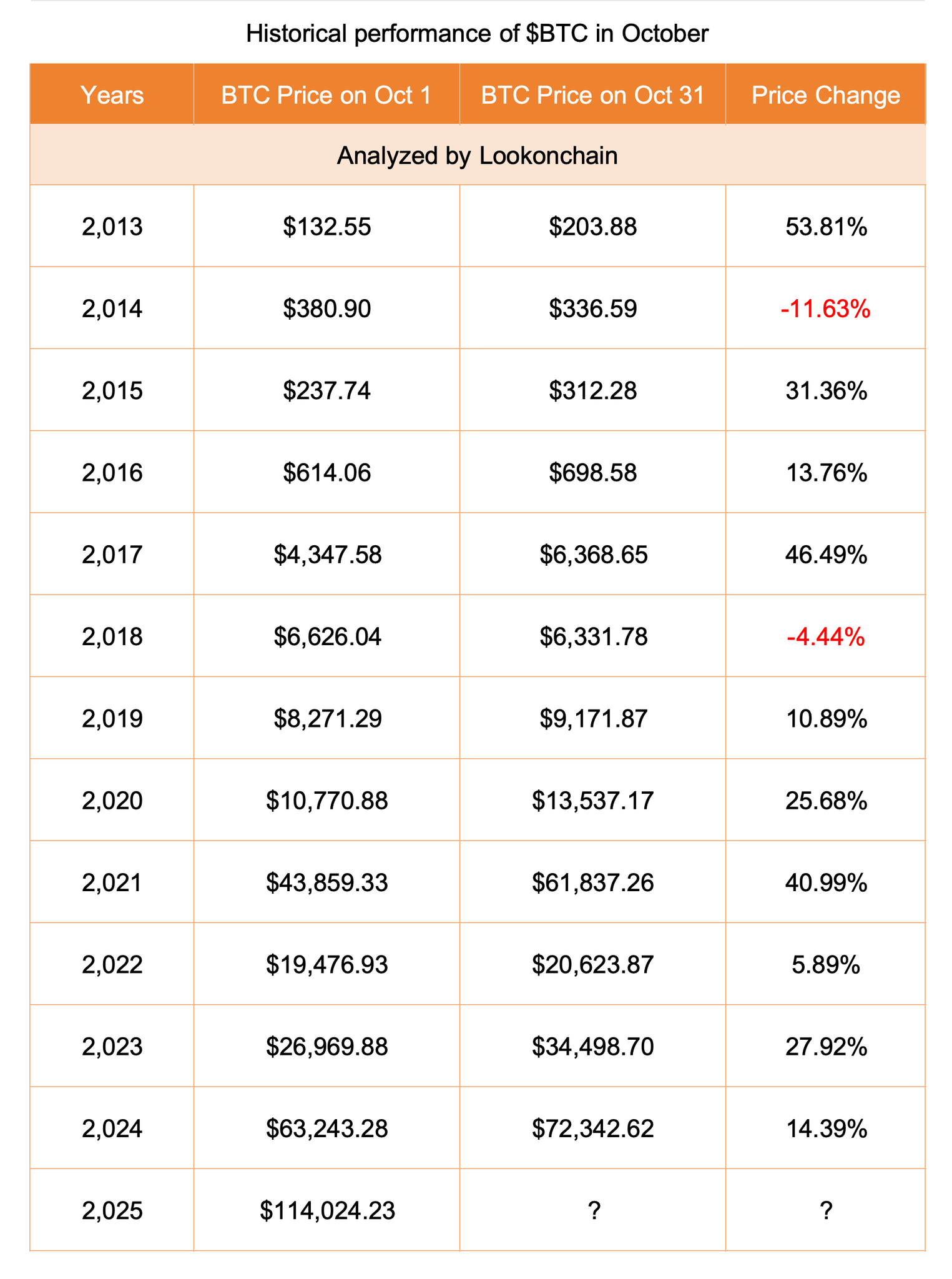 Odaily星球日报讯 据 Lookonchain 监测,历史数据显示,过去 12 年中,比特币价格有 10 年在 10 月份出现上涨。