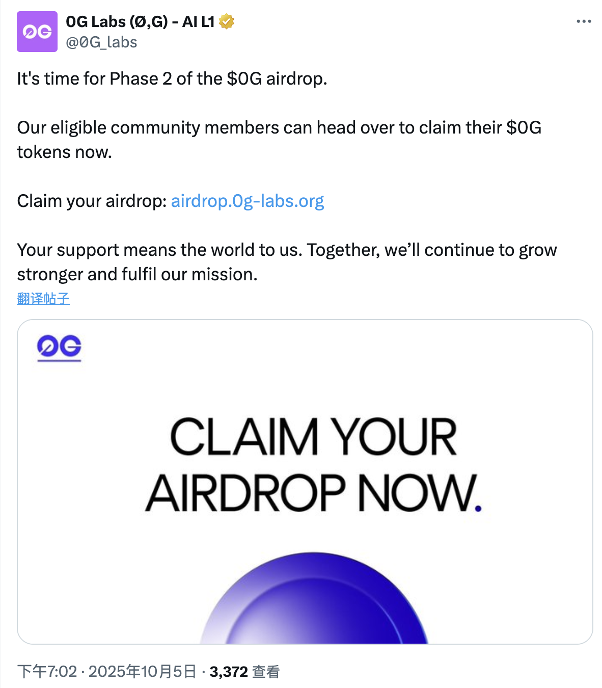 Odaily星球日报讯 0G Labs 官方 X 账户已被盗用,盗用者正持续发布虚假空投信息,请勿点击相关链接。