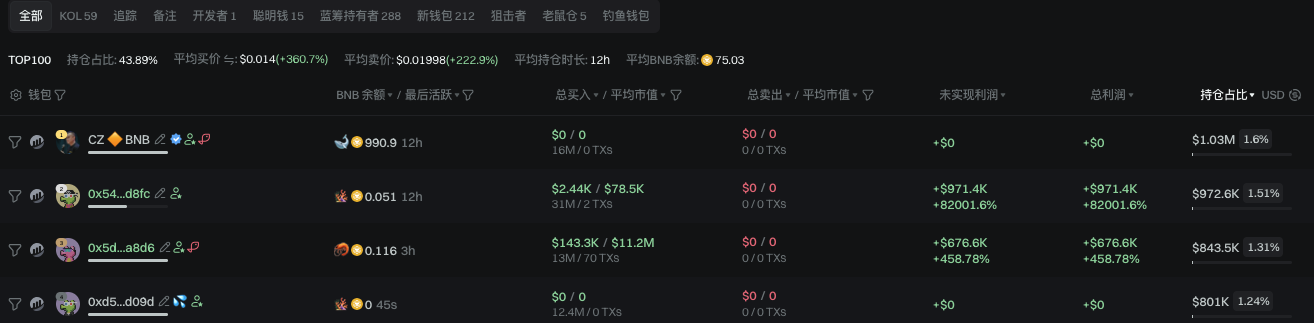 CZ地址“客服小何”持仓价值超100万美元,成为全网最高浮盈地址