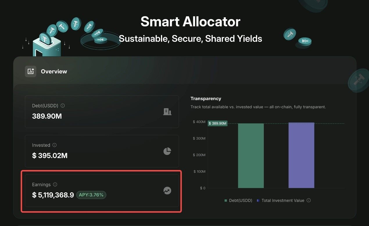 Odaily星球日报讯 去中心化稳定币 USDD 官方宣布,其 Smart Allocator 机制已累计生成超过 500 万美元真实收益。Smart Allocator 是 USDD 推出的收益策略,该机制通过将协议储备资产智能分配至 Aave、JustLend 等 DeFi 平台,实现可持续收益生成,目前,USDD TVL 超 5.5 亿美元,已部署至波场 TRON、以太坊等主流公链。