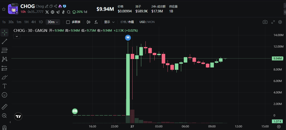 Monad生态Meme币CHOG市值短时突破1000万美元