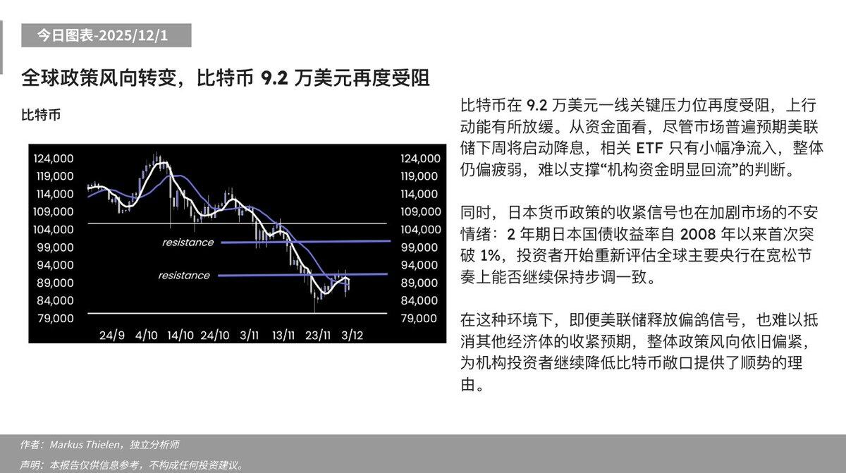在这种环境下,即便美联储释放偏鸽信号,也难以抵消其他经济体的收紧预期,整体政策风向依旧偏紧,为机构投资者继续降低比特币敞口提供了顺势的理由。