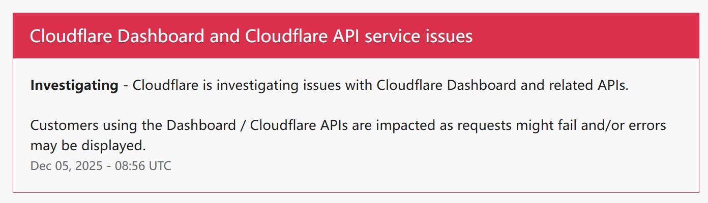 使用控制面板/Cloudflare API 的客户会受到影响,请求可能会失败和/或显示错误。
