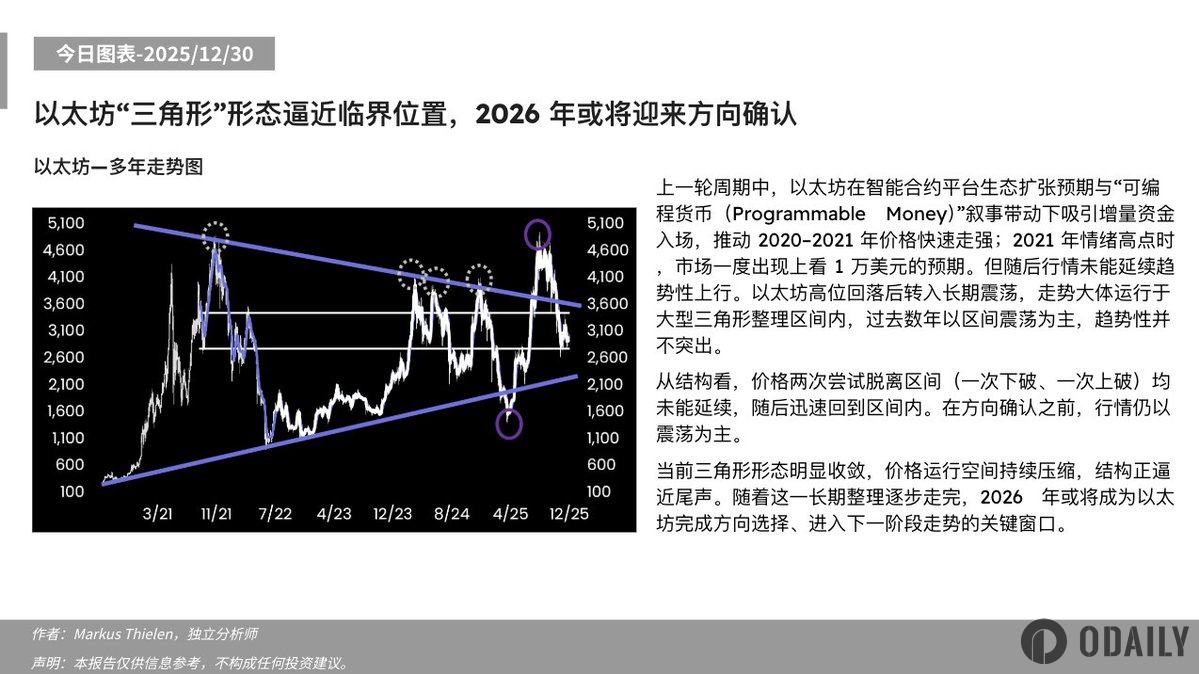 Matrixport:以太坊“三角形”形态逼迫近临界位置,2026年或将迎来方向确认