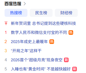 “数字人民币和微信支付宝的不同”登上百度热搜榜第一