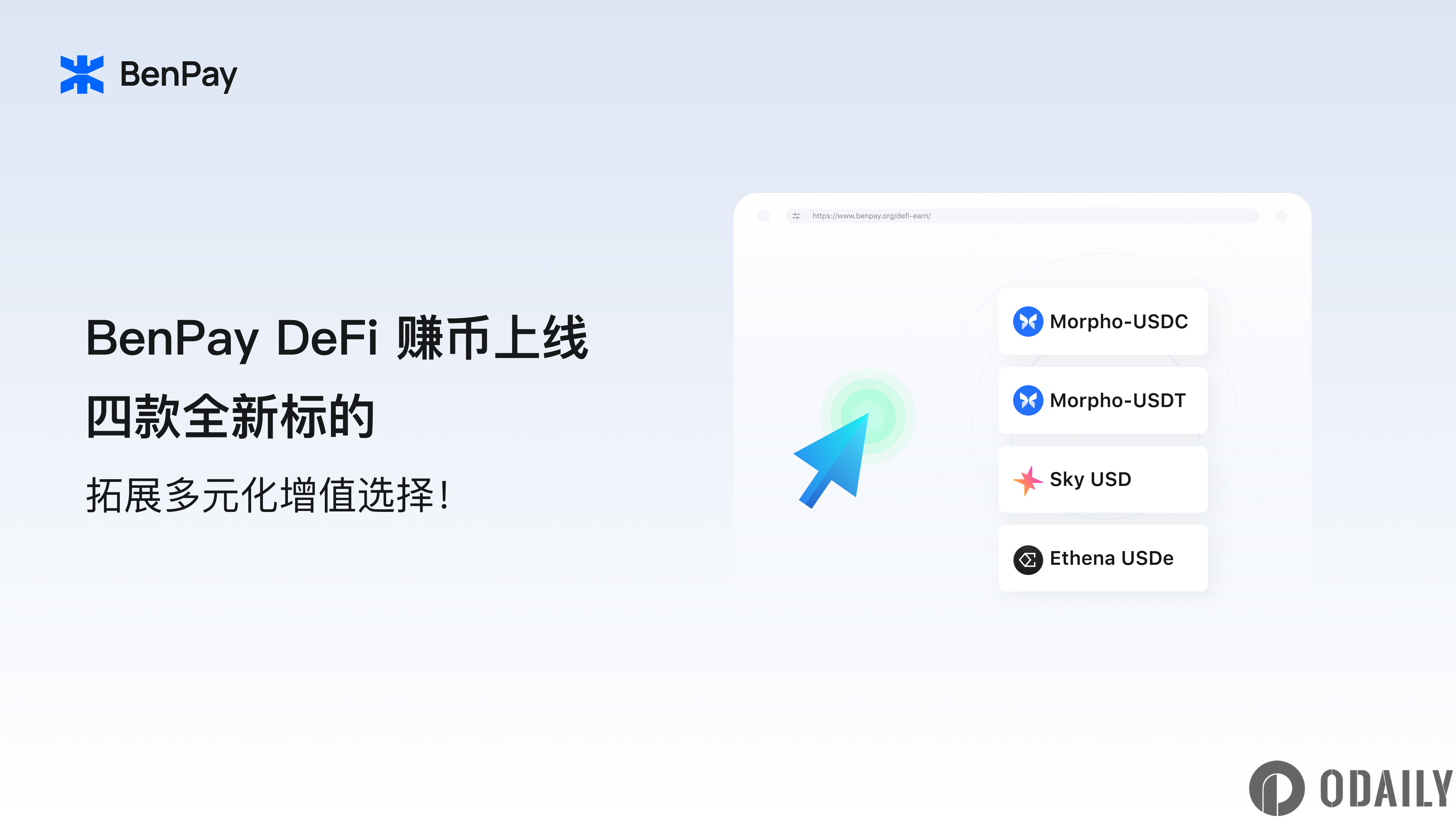 BenPay DeFi赚币上新四款标的,丰富安全稳健增值选项