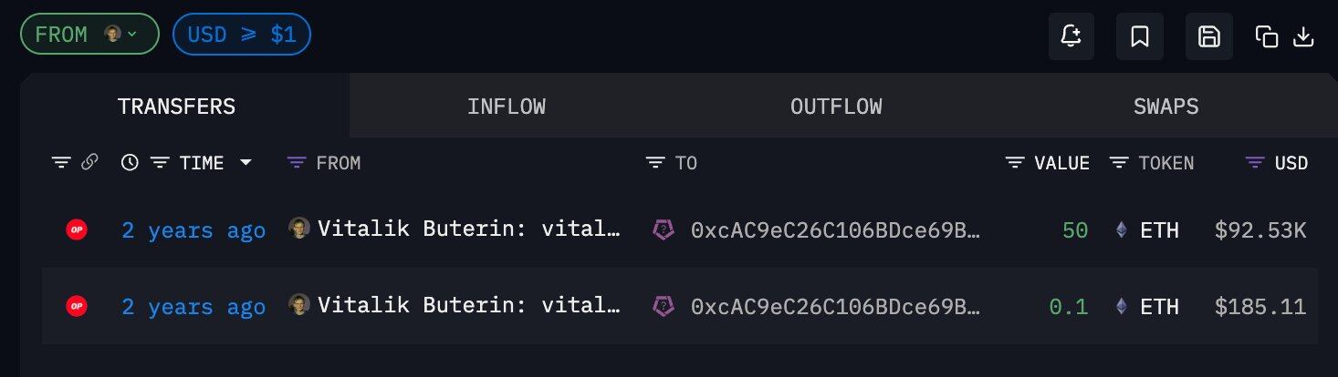 Odaily星球日报讯 据 Ai 姨监测,11 小时前,Vitalik 关联地址 (0xcAC...3949) 向 Paxos 充值 330 枚 ETH,价值 102 万美元。该地址曾在两年前收到 vitalik.eth 转移的 50.1 枚 ETH,这是该地址自 2025 年 1 月以来第二次向 Paxos 充值代币。