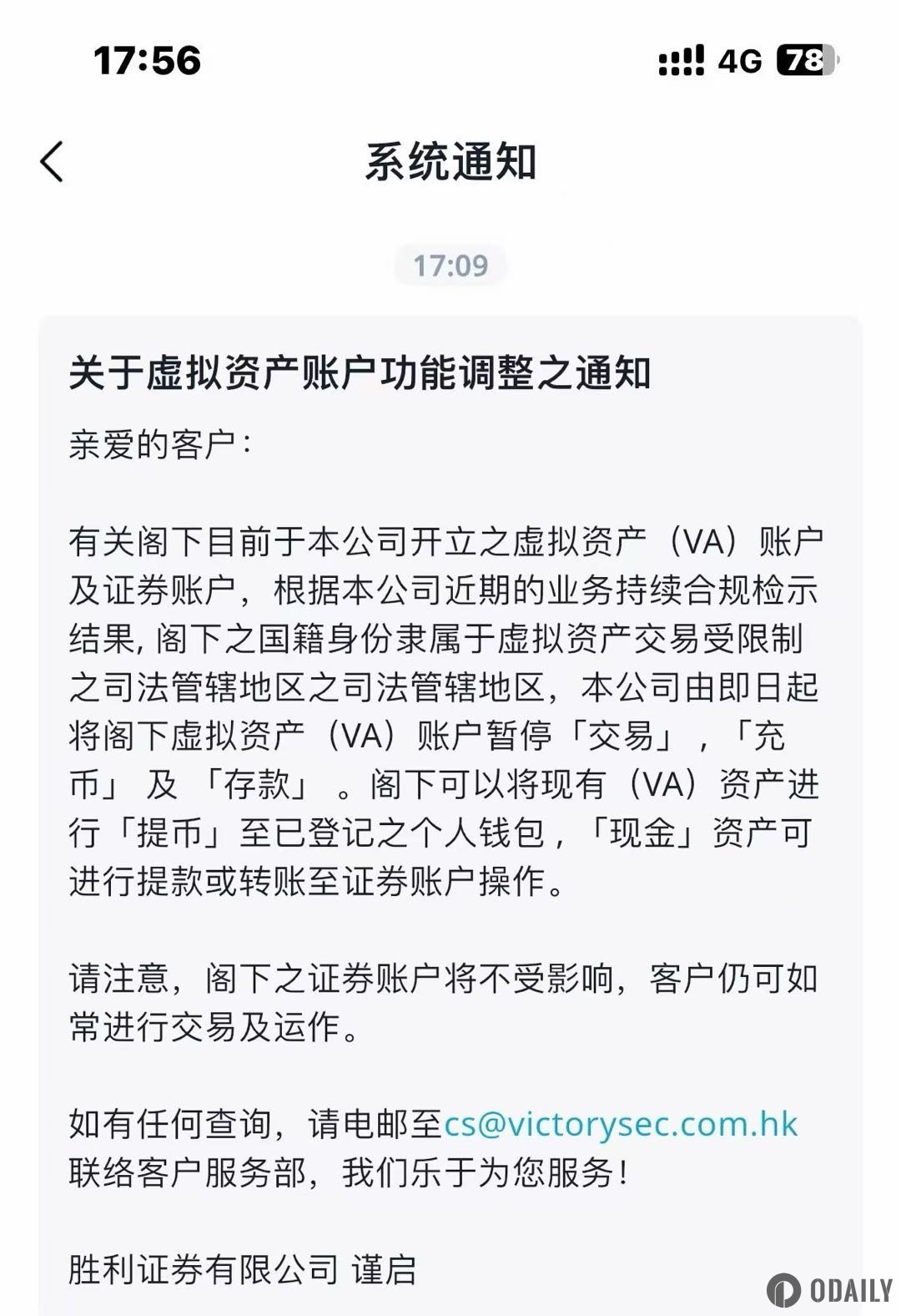 香港胜利证券已暂停中国大陆身份用户加密货币交易功能