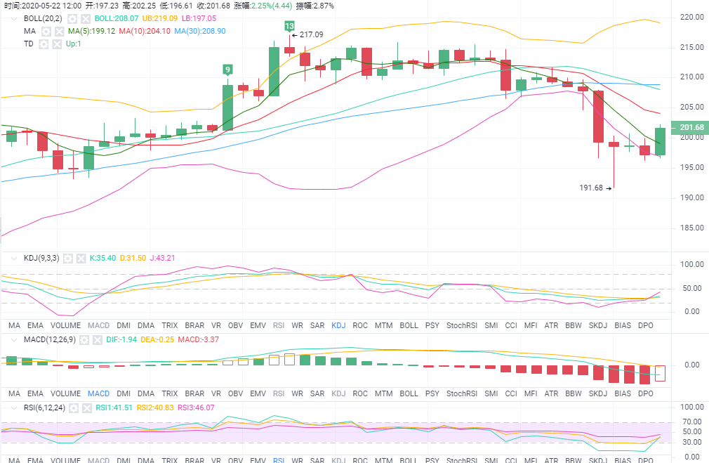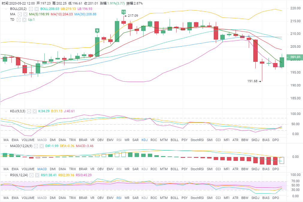 操作建议:202附近布局空单,止盈3个点止损2个点。