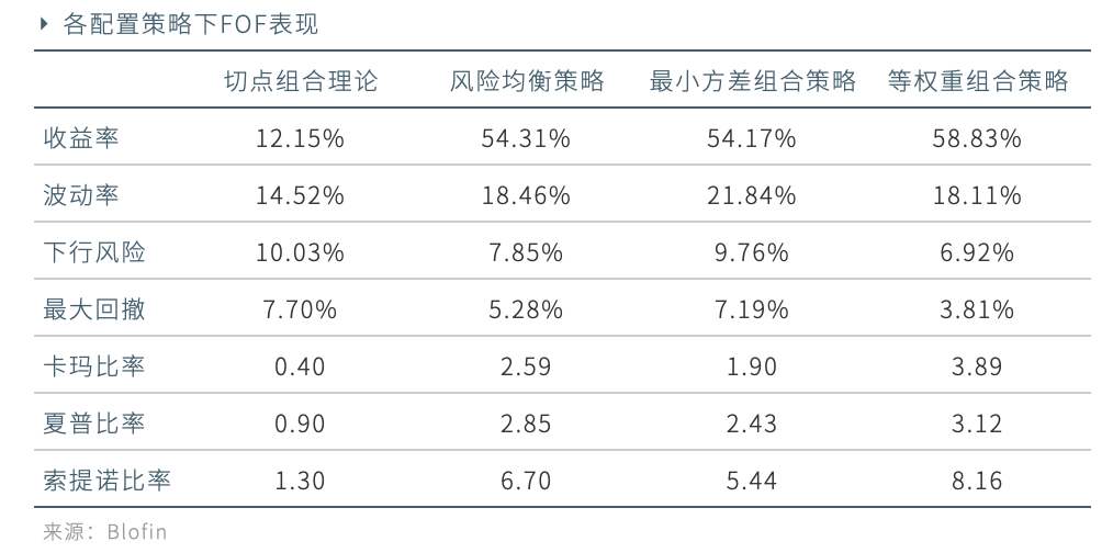 各策略下FOF的表现如下表: