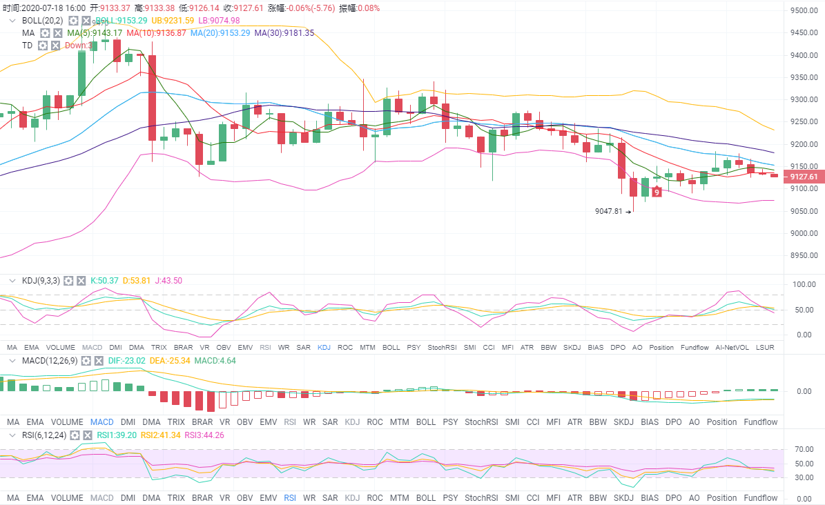 操作建议:9170-9200空单进场,目标9050-9020,止损100点;9020-9050多单进场,目标9180-9220,止损120点。