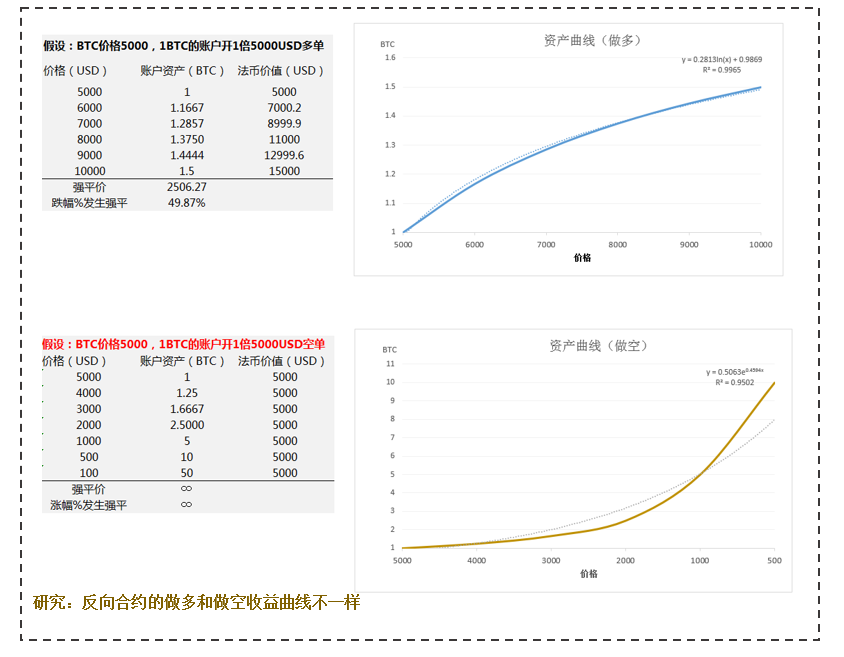 反向合约(主流的永续合约形式)做多和做空的曲线(举例中默认方向正确)