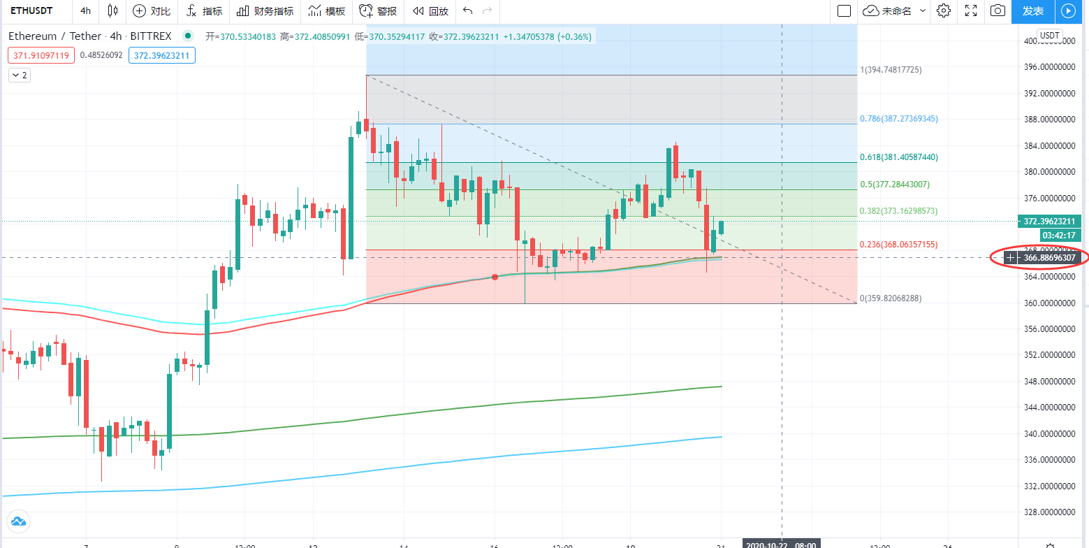 以太坊方面可以很清楚的看出来走出了一波跟随大趋势的跌势,不像比特币那样自玩自嗨,从盘面上可以很清楚的看出来行情整体上还是比较走技术面的,那么我们依托技术面去进场即可,行情再次回探至vegas隧道双通道上方,而查看历史来看,我们可以很简单的发现vegas通道双隧道的支撑作用还是很明显的,那么短线的操作上个人建议还是以低多为主,空单介入点位个人 建议可以放在斐波拉契回撤位置0.5-0.618黄金分割线。需要实时指导的朋友可以加shenwy886寻求帮助