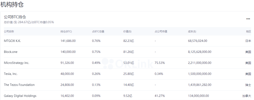 除了巨鲸们不断增持,机构或公司们仍在不断加仓或锁仓。