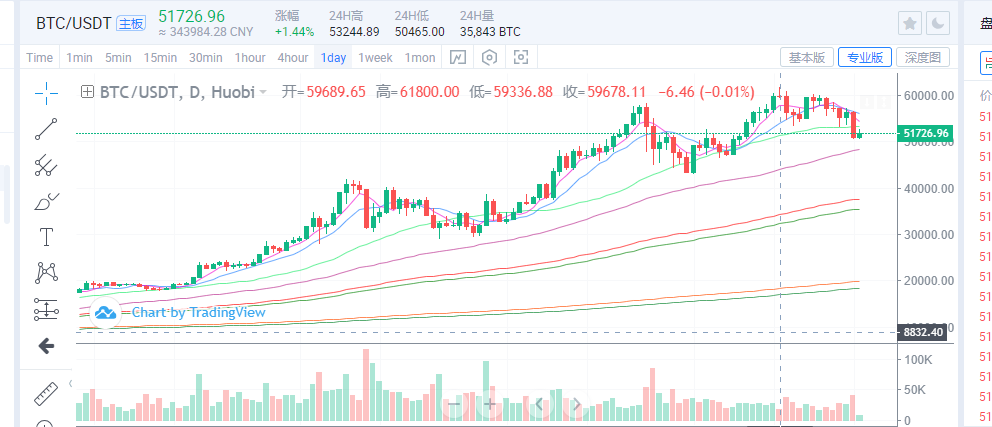 K线实际上一直摇摇欲坠,马斯克推特喊单后比特币顺势突破多个K线阻力位,这给了很多人信心。但今天看显然是双拳难敌四手,流量大V也难以抵抗整个市场的下坠趋势。
