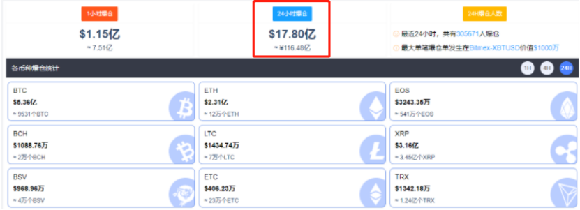 昨日加密货币市场的全线下跌,却给合约市场带来了不小的冲击。据比特币家园网数据显示,截至昨晚时分,合约市场1小时爆仓资金达1.15亿美元(约合人民币7.5亿元)。最近24小时,全网共有30.6万人爆仓,爆仓资金达17.8亿美元(约合人民币116.44亿元)。