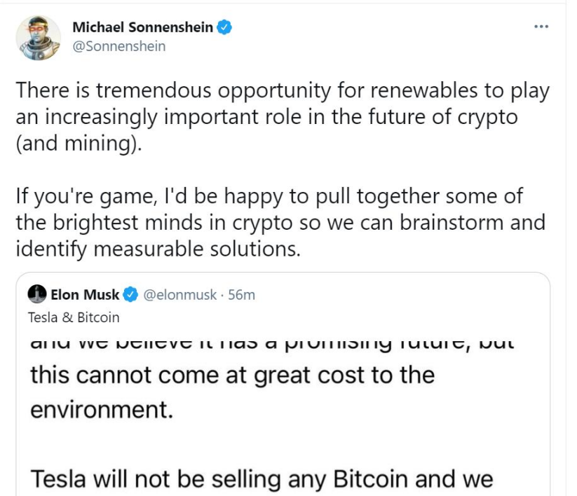 其一,特斯拉CEO马斯克推特发文称:对出于碳中和和全球环境的考虑,特斯拉暂停使用比特币支付。