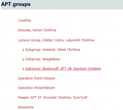以下是该国家级背景黑客部分 APT 组织名信息: