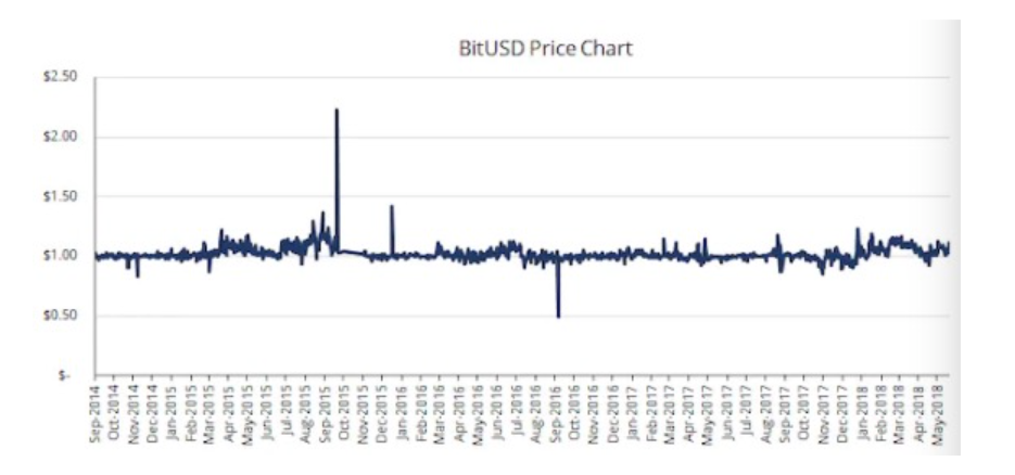 确实,如上所述,BitUSD 对美元的锚定保持了一定的尊重。但是,BitShares 作为一个区块链网络实际上是无法使用的。随着 BitShares 和 BitUSD 逐渐被遗忘,丹·拉里默转向了 EOS 以"击败以太坊"(也不太成功),那么下一个去中心化稳定币的篇章会是什么呢?