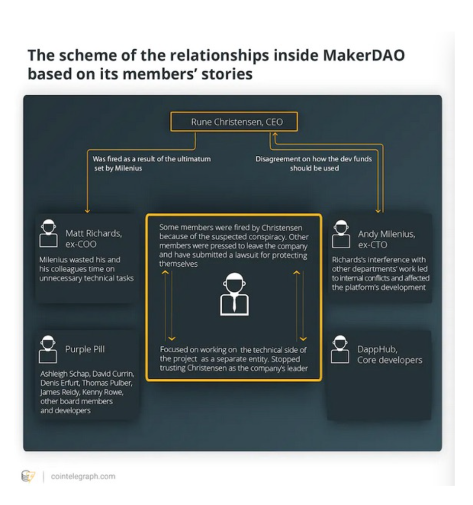 由于实际上 DAI 稳定币取得了近 1 亿美元的流动性,当然就必然开始了一场权力斗争,而这场斗争在 2019 年开始。