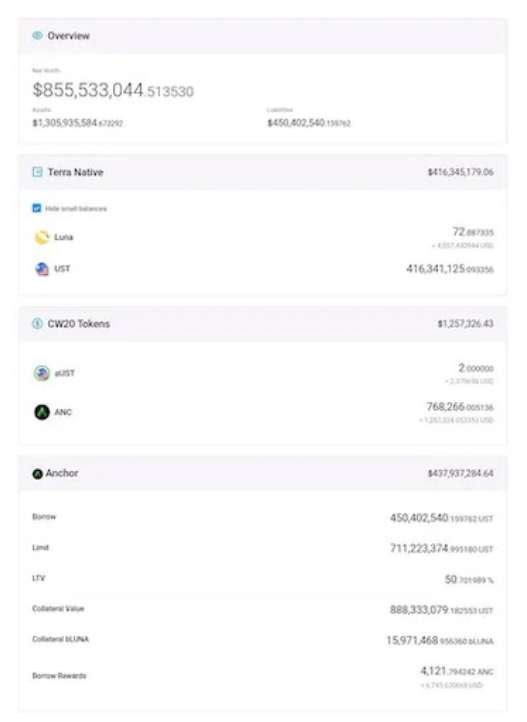 这个账户借入了 4.5 亿美元的 UST,没有获得任何收益,因此放弃了 2900 万美元的收益,并支付了 4400 万美元的贷款利息。还有很多类似的“巨鲸”账户,只是为了让 Anchor 能够以虚假的贷款利息维持其对 UST 的 20% APY。